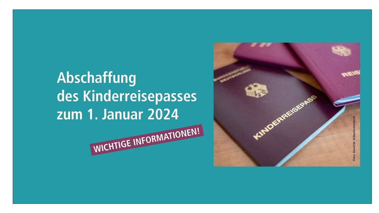 Ab dem 1. Januar 2024 dürfen Kinderreisepässe nicht mehr neu ausgestellt, verlängert oder aktualisiert werden. Bereits ausgestellte Kinderreisepässe können bis zum Ende ihrer Gültigkeit weiterverwendet werden.